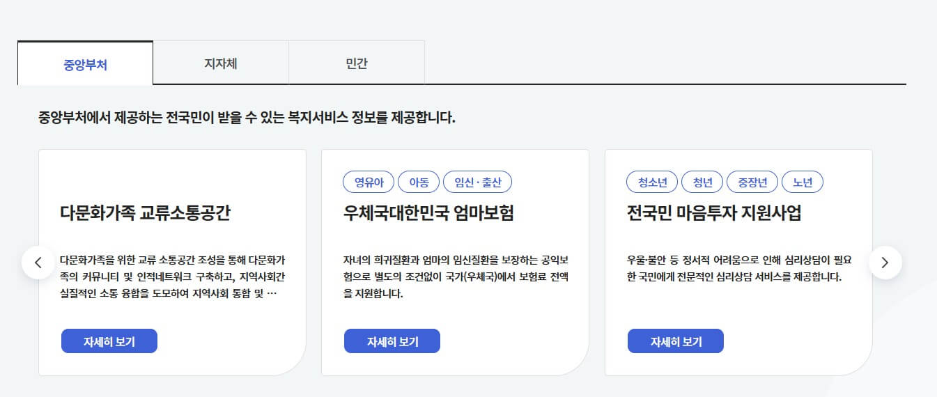 🔹 복지로 (www.bokjiro.go.kr) → 복지 서비스 검색 및 신청 방법 확인